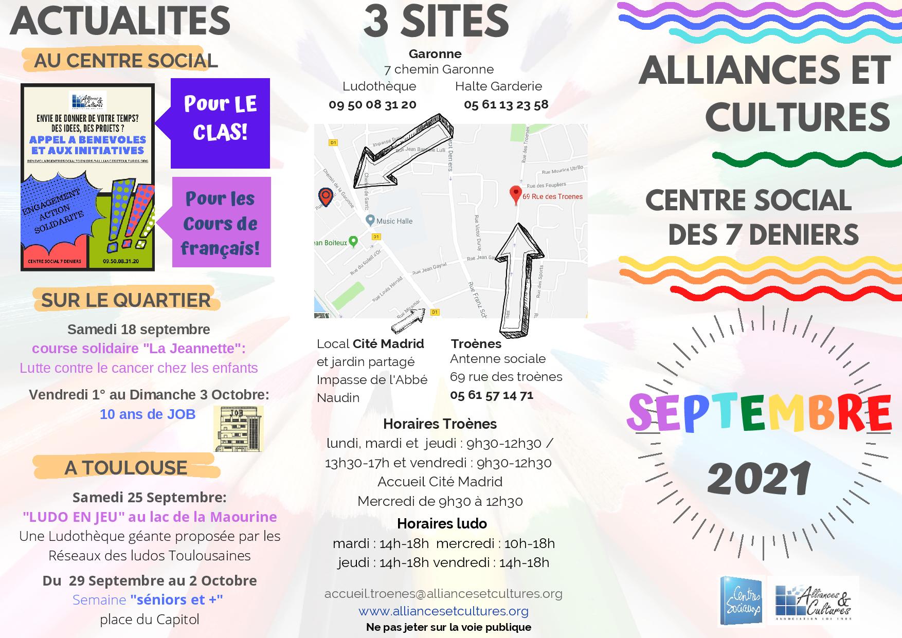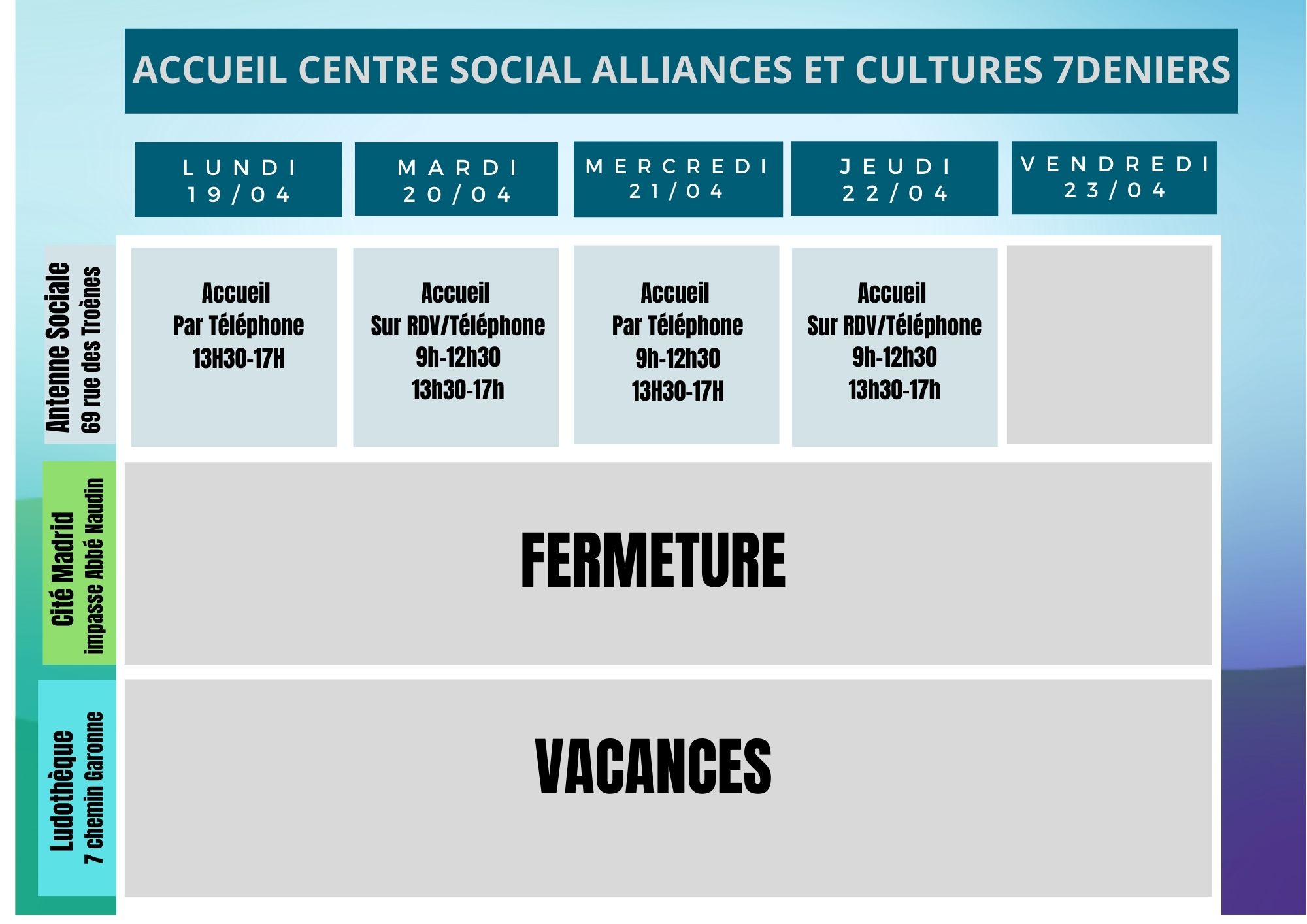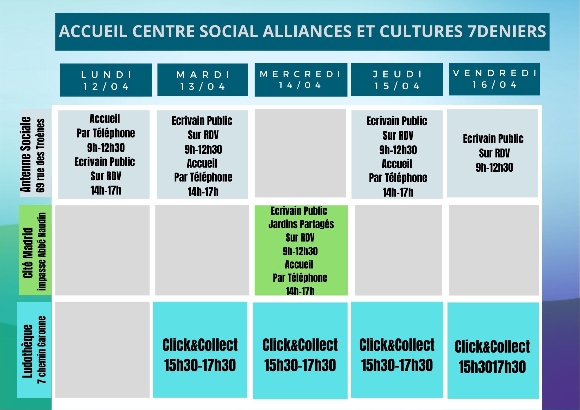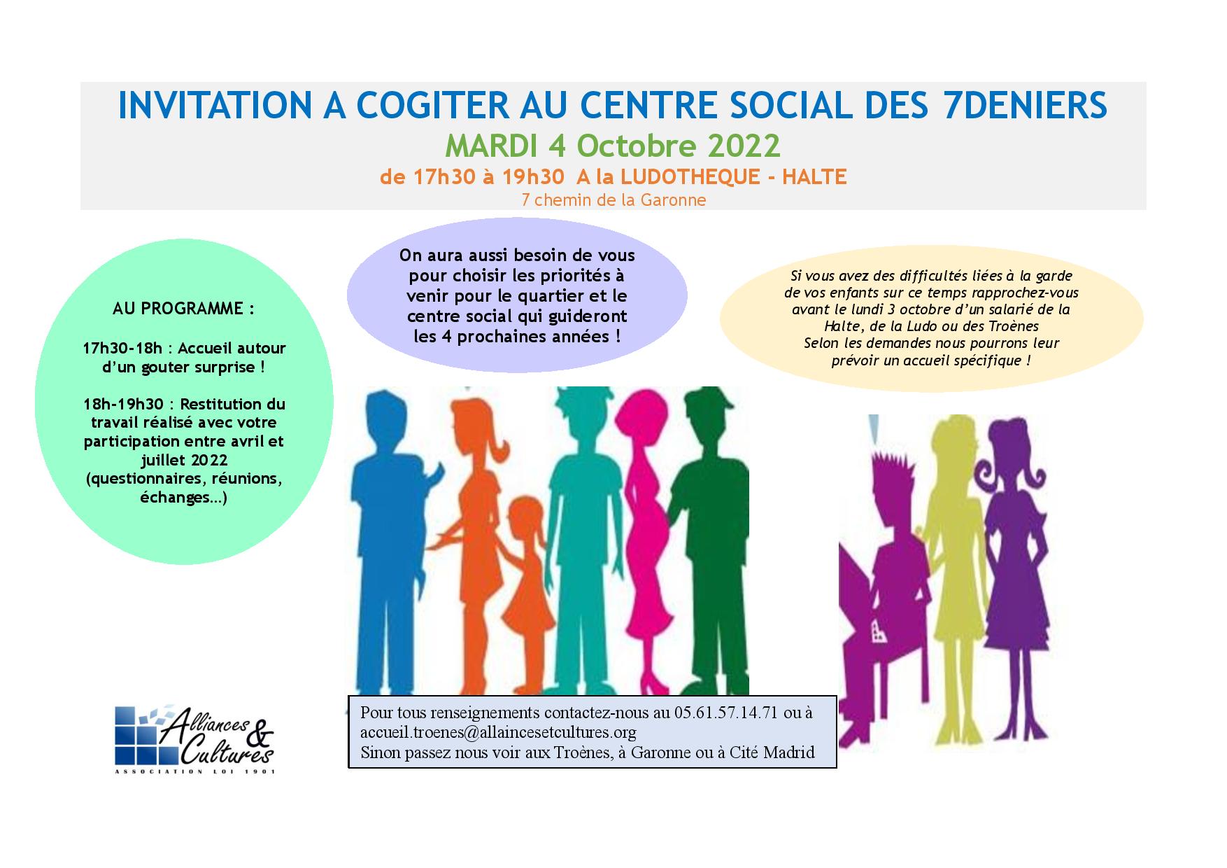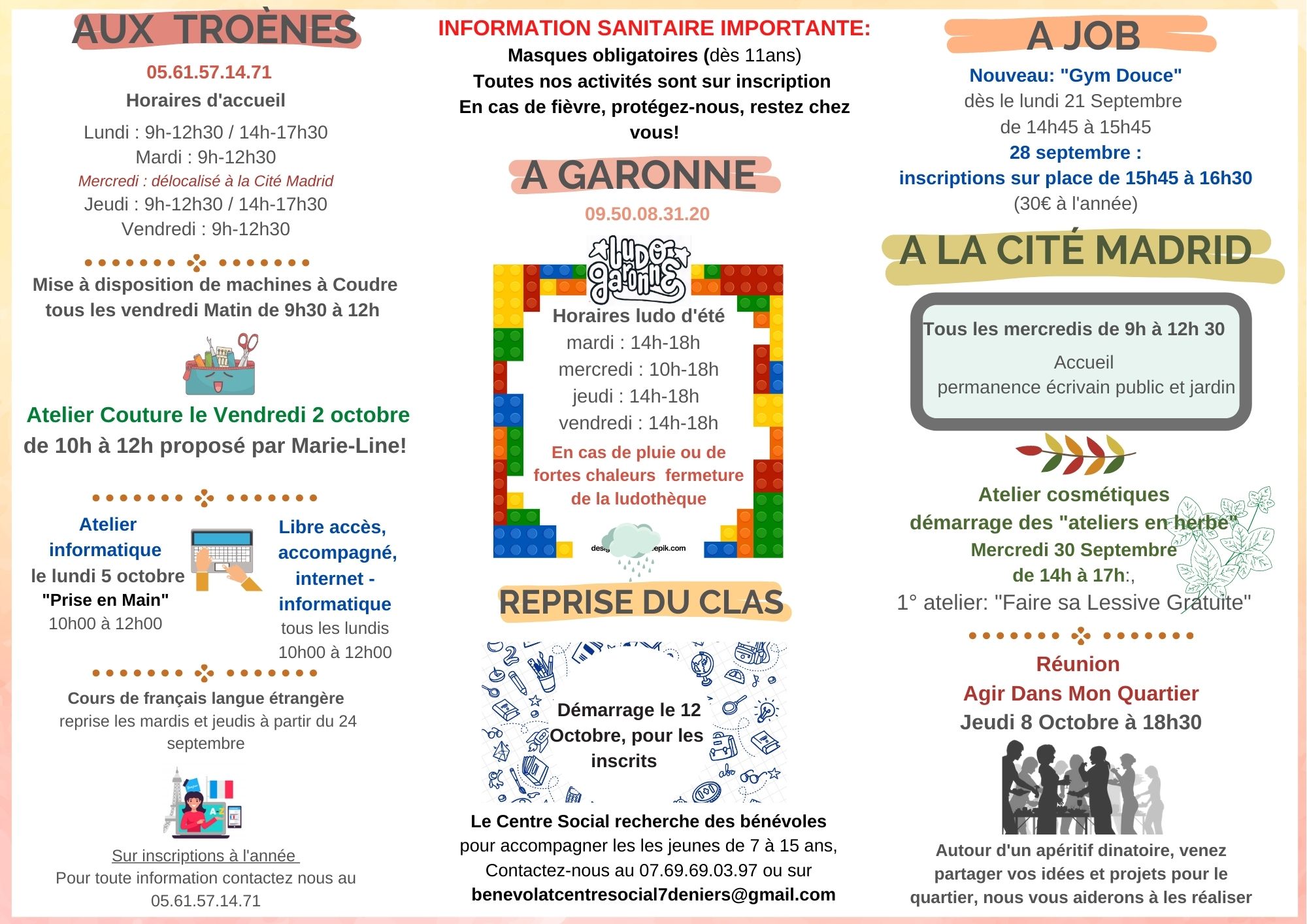 Téléchargez nos programmes d'activités ! Programme juillet 2025Programme ludo d'été 2025 De 3 mois à 17 ans En Famille Pour les adultes Vie de quartier Ludothèque Galerie photos Bienvenue au Centre Social des 7 Deniers Actualités