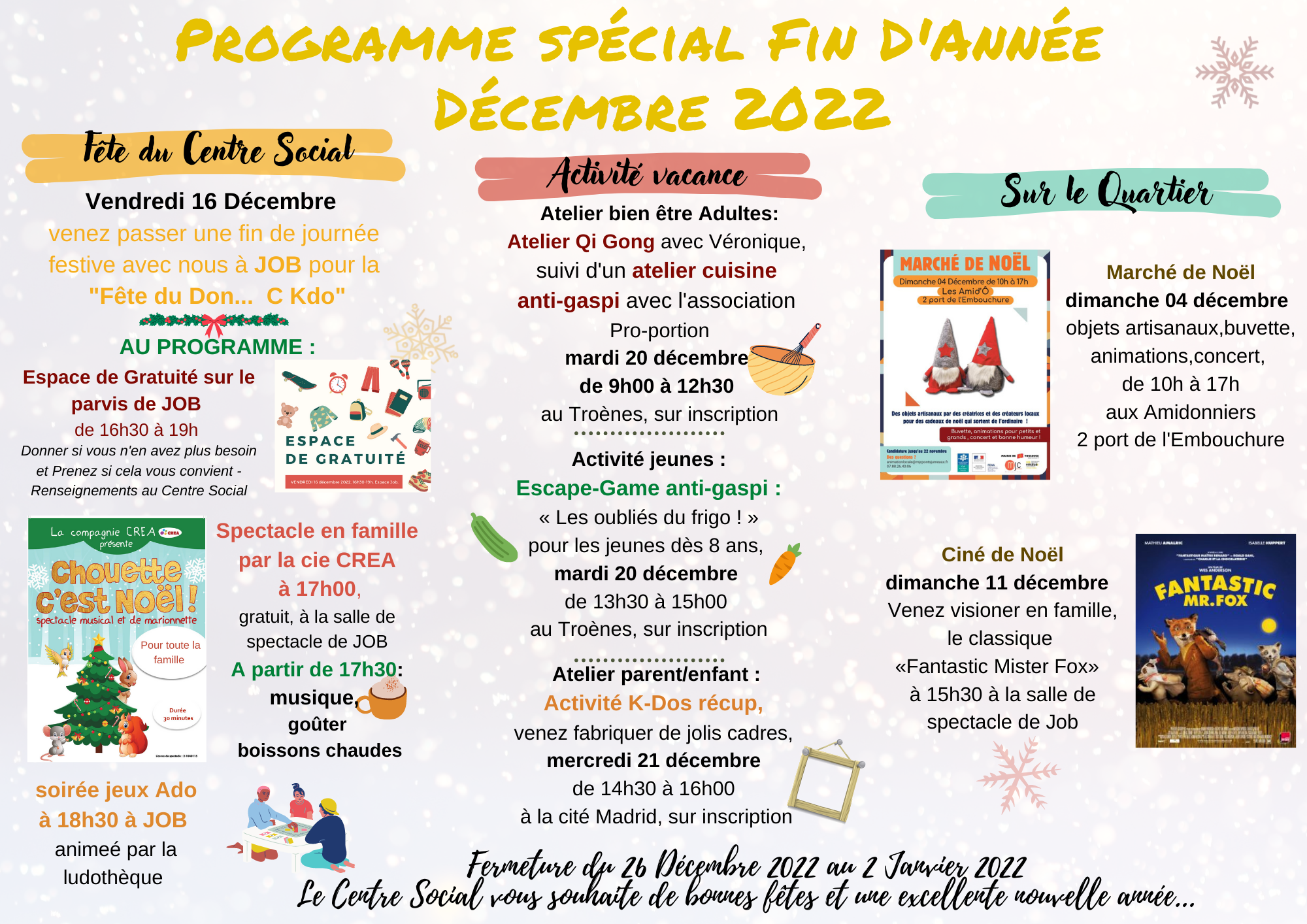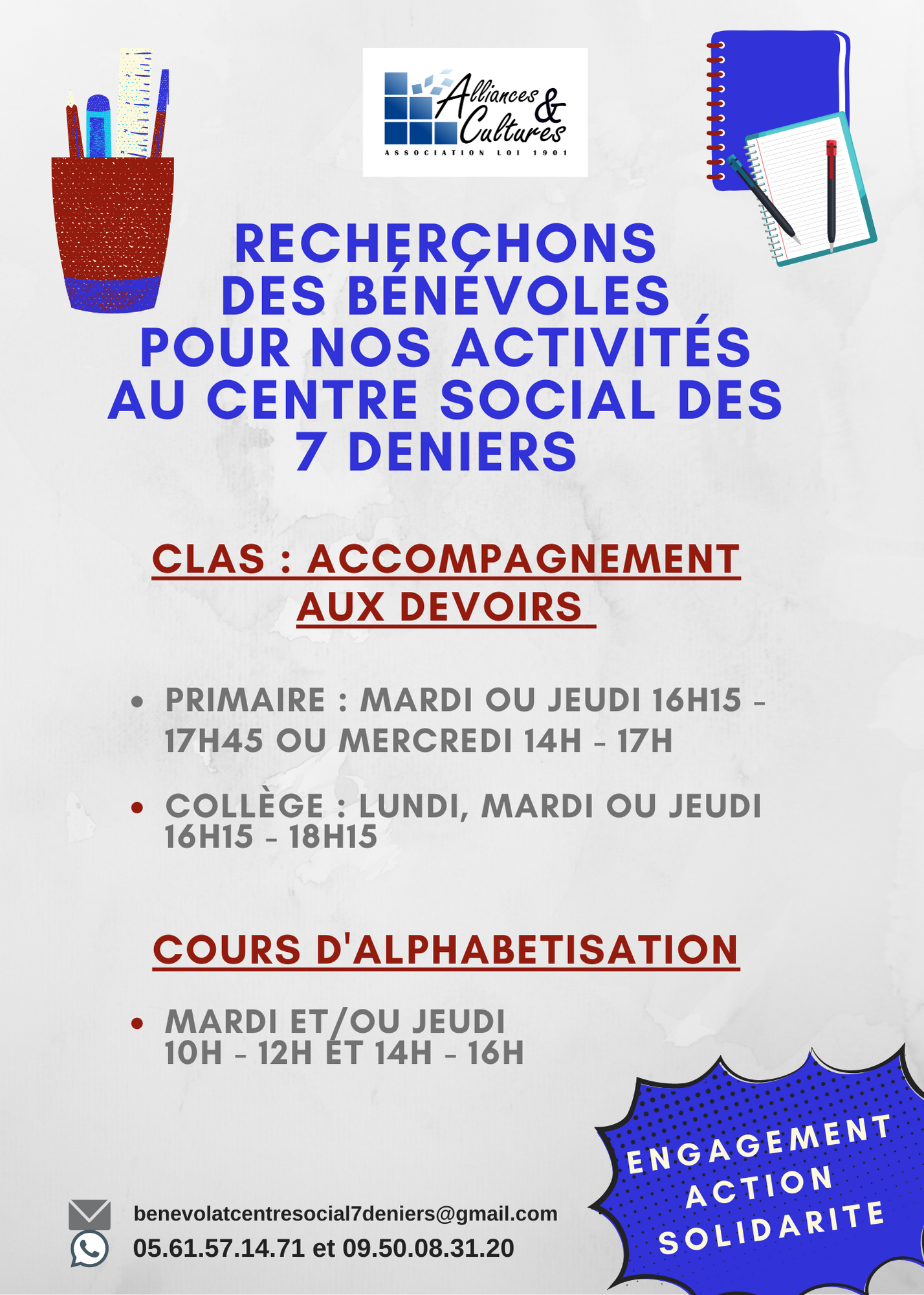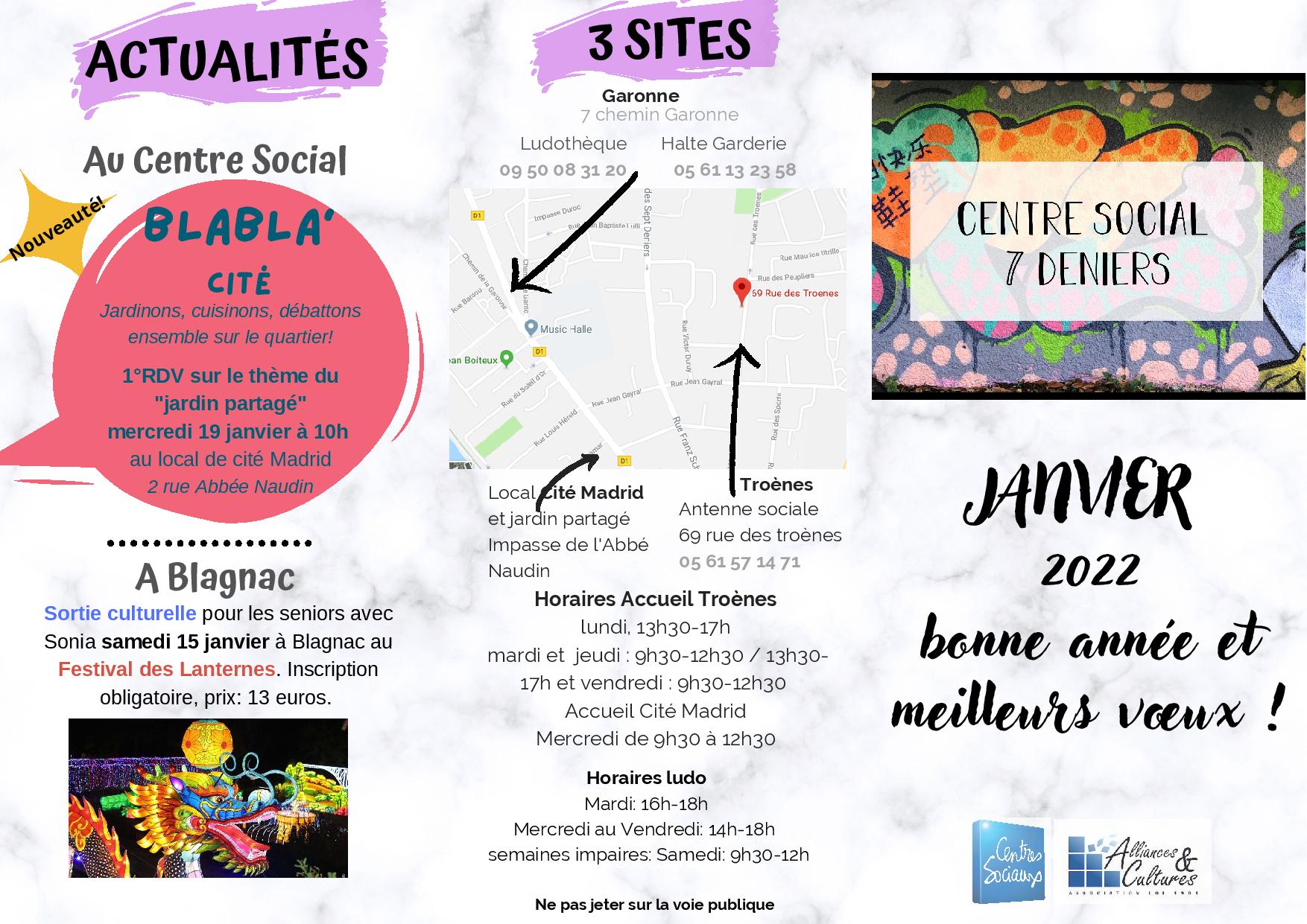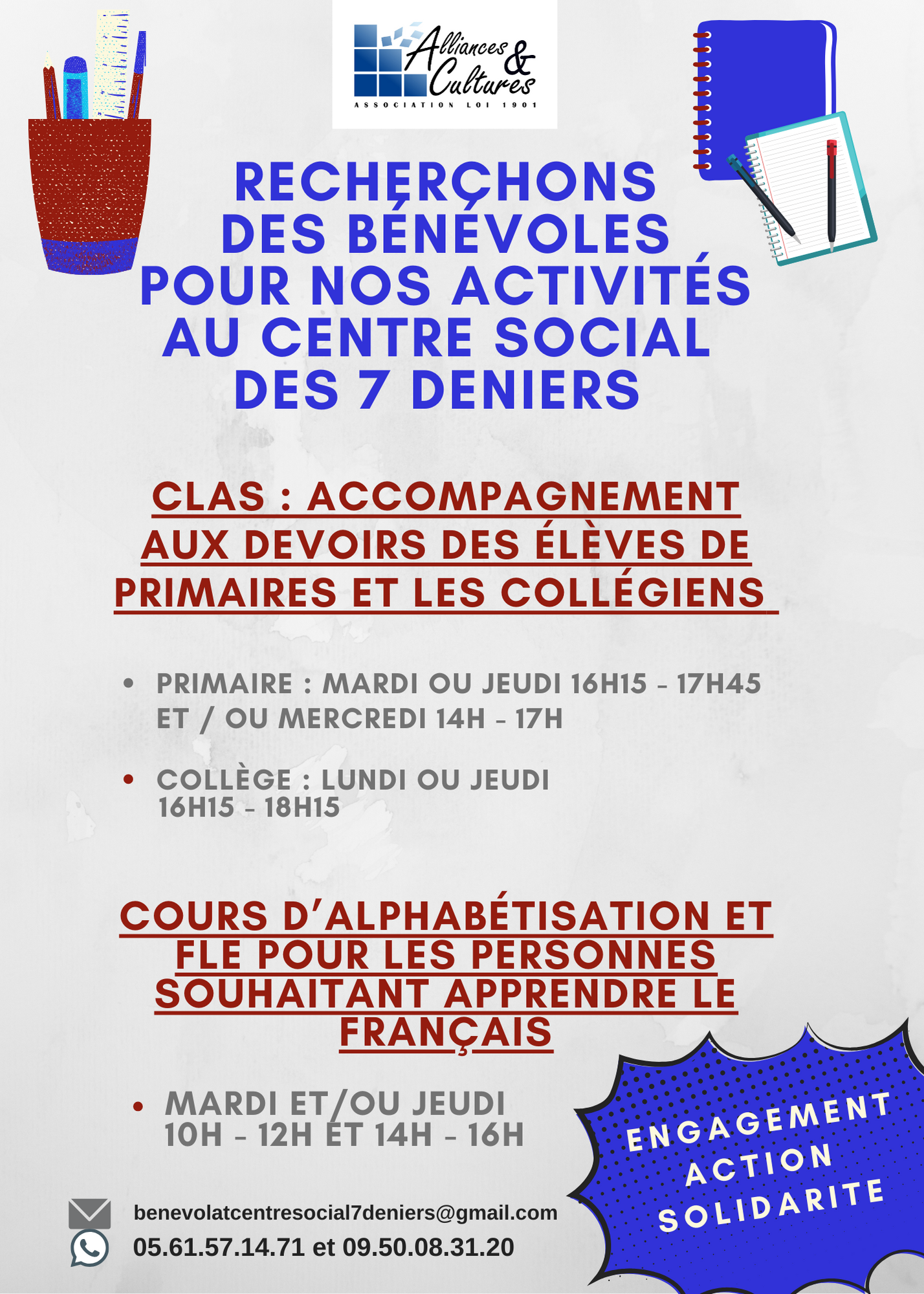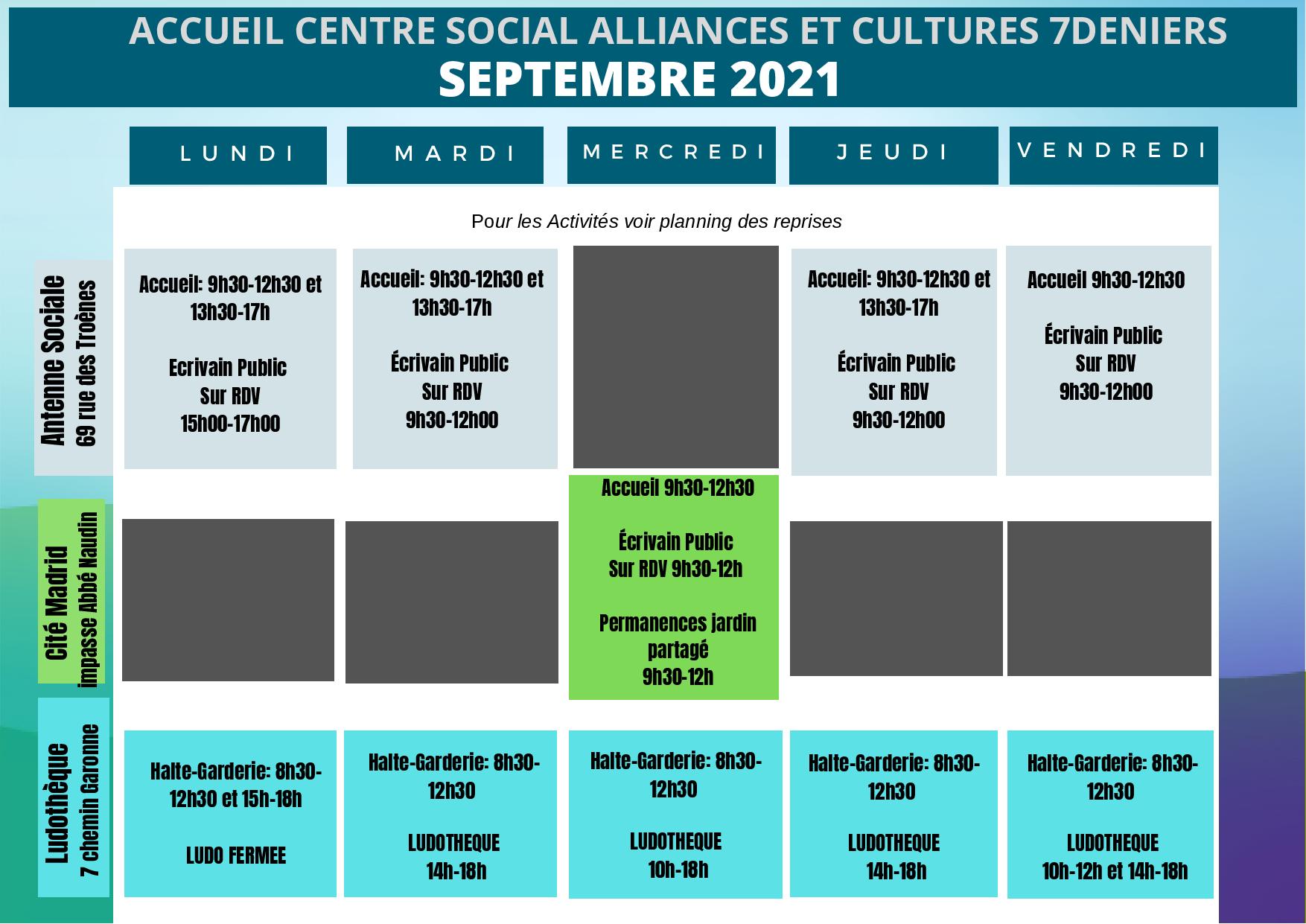 Téléchargez nos programmes d'activités ! Programme juillet 2025Programme ludo d'été 2025 De 3 mois à 17 ans En Famille Pour les adultes Vie de quartier Ludothèque Galerie photos Bienvenue au Centre Social des 7 Deniers Actualités